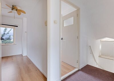 Eerste verdieping: overloop met vaste kastruimte, 3 slaapkamers (7m², 7m², 9m² voorzien van vaste kast).