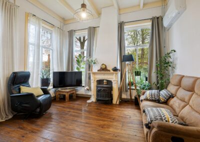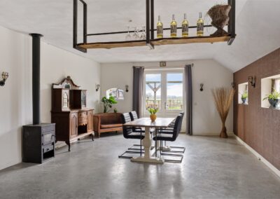 Deze woonboerderij voelt als een plek waar je alle kanten op kunt. Werk en privé zijn hier eenvoudig te scheiden, ideaal als je gasten wilt ontvangen of aan huis wilt werken. De combinatie van airco’s, vloerverwarming en een karakteristieke houtkachel zorgt het hele jaar door voor een prettig binnenklimaat. En met zoveel ruimte om je heen, geniet je elke dag van vrijheid, privacy en eindeloze mogelijkheden.