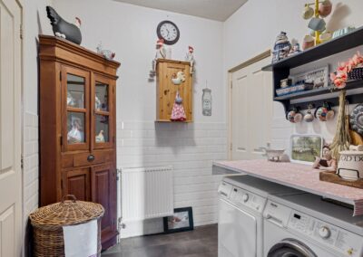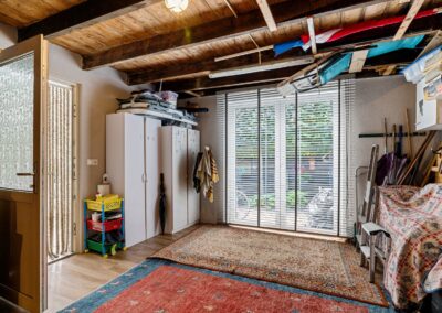 - In de bijkeuken/wasruimte vind je een voorraadkast;