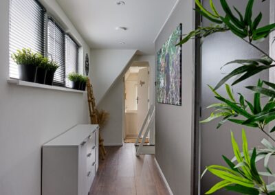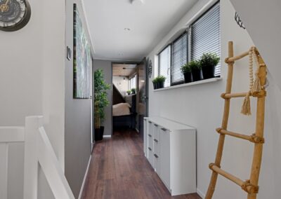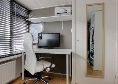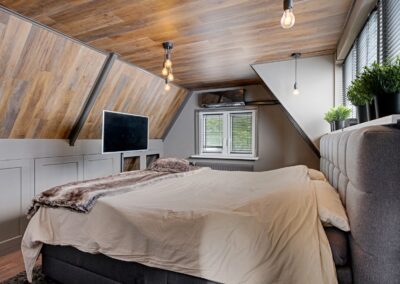 Boven vind je aan weerszijden van het dak een dakkapel waarvan één is voorzien van kunststof kozijnen met HR++-glas. De voorste en achterste slaapkamers zijn voorzien van rolluiken die werken op zonne-energie én een airco die verwarmt en koelt.