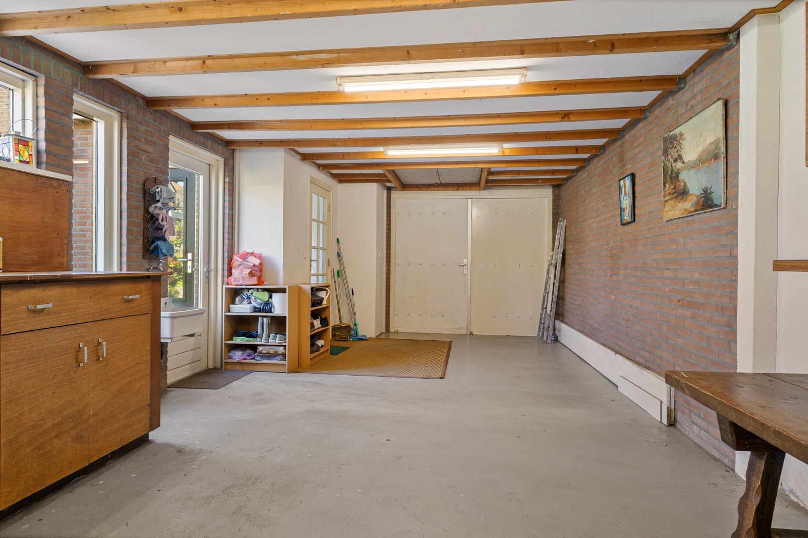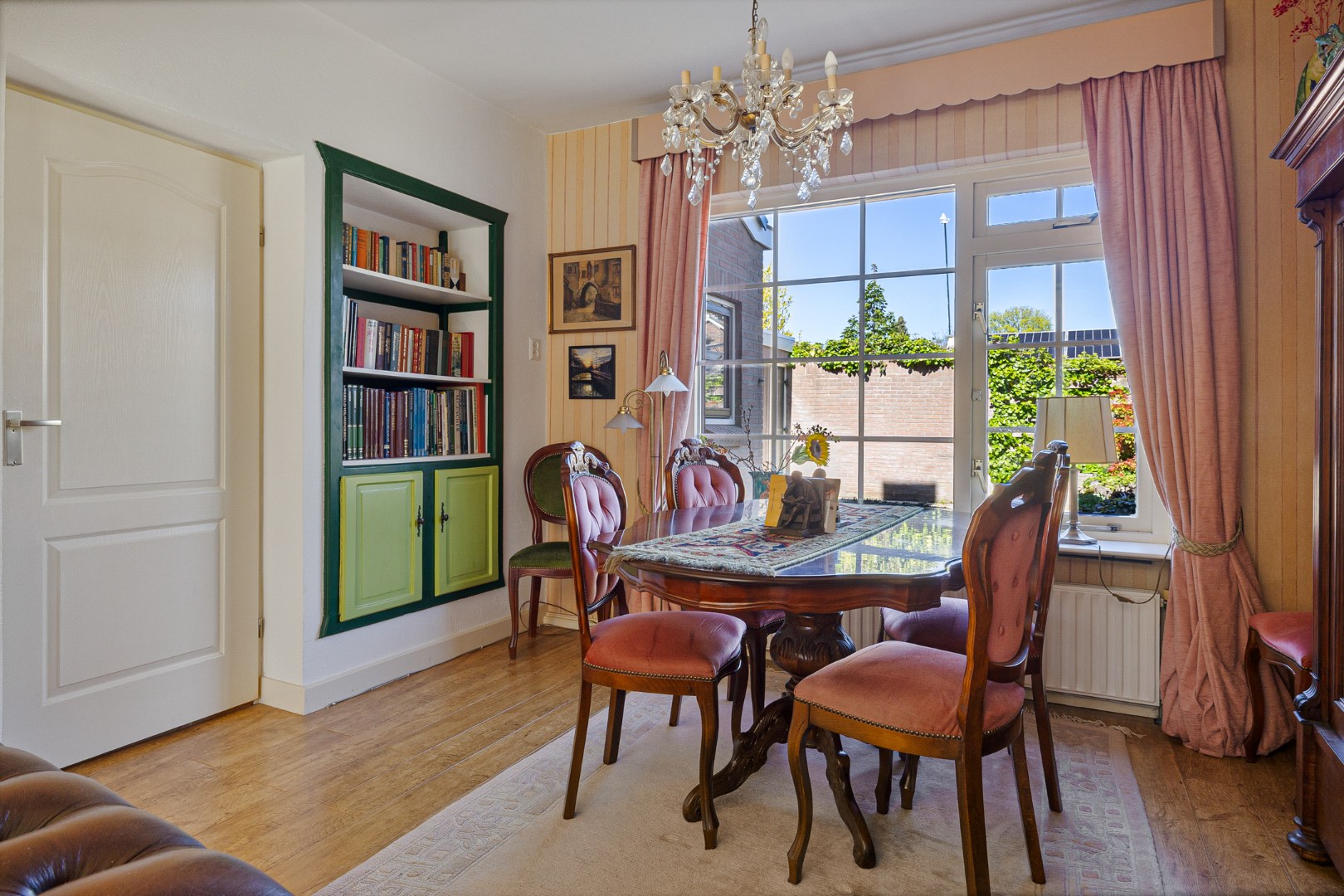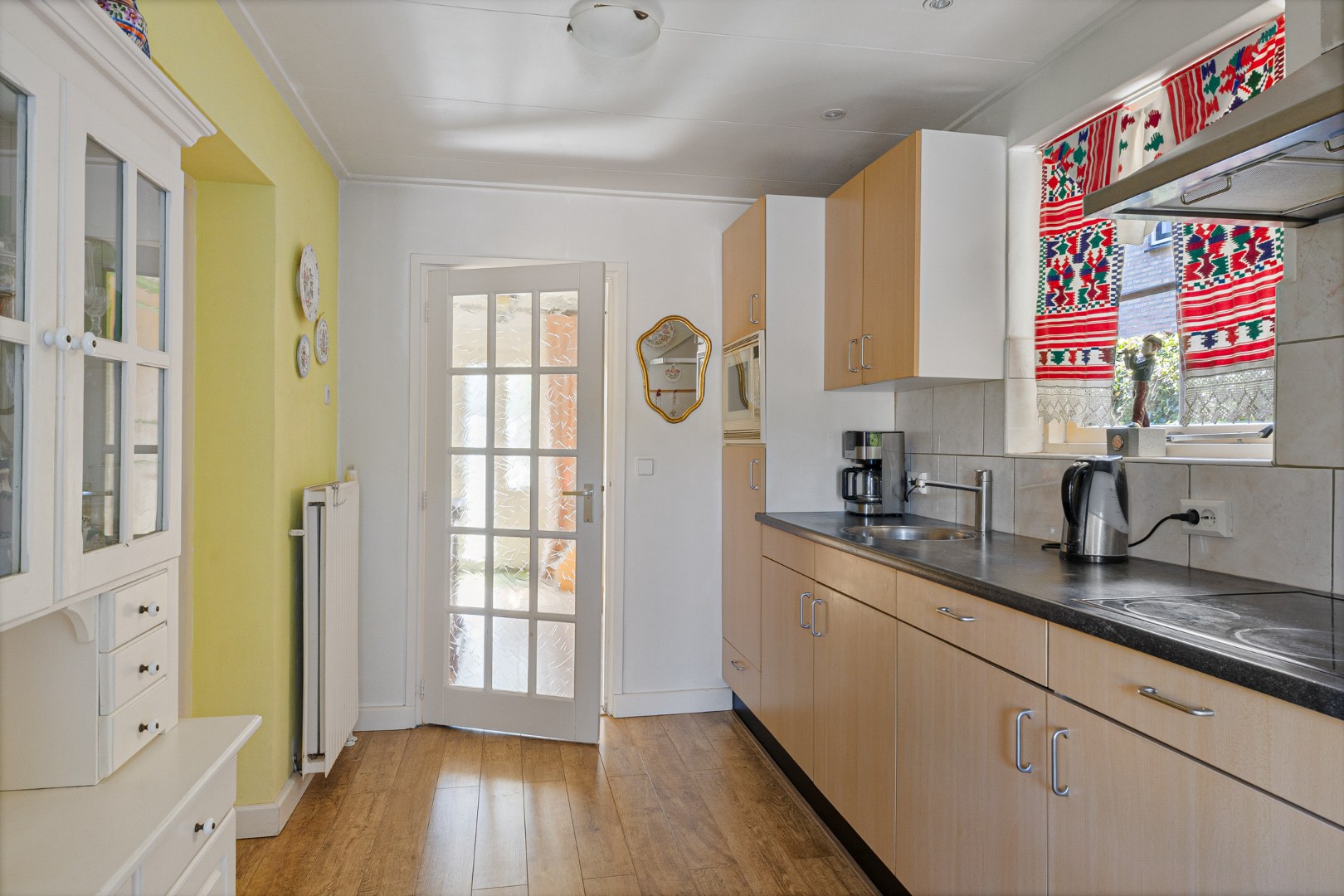 Begane grond: Entree/hal met vaste kastruimte, meterkast toilet en vaste trap naar verdieping, keuken voorzien van inbouwapparatuur en vaste kastruimte, eetkamer, woonkamer, bijkeuken met achterentree, garage en berging.
