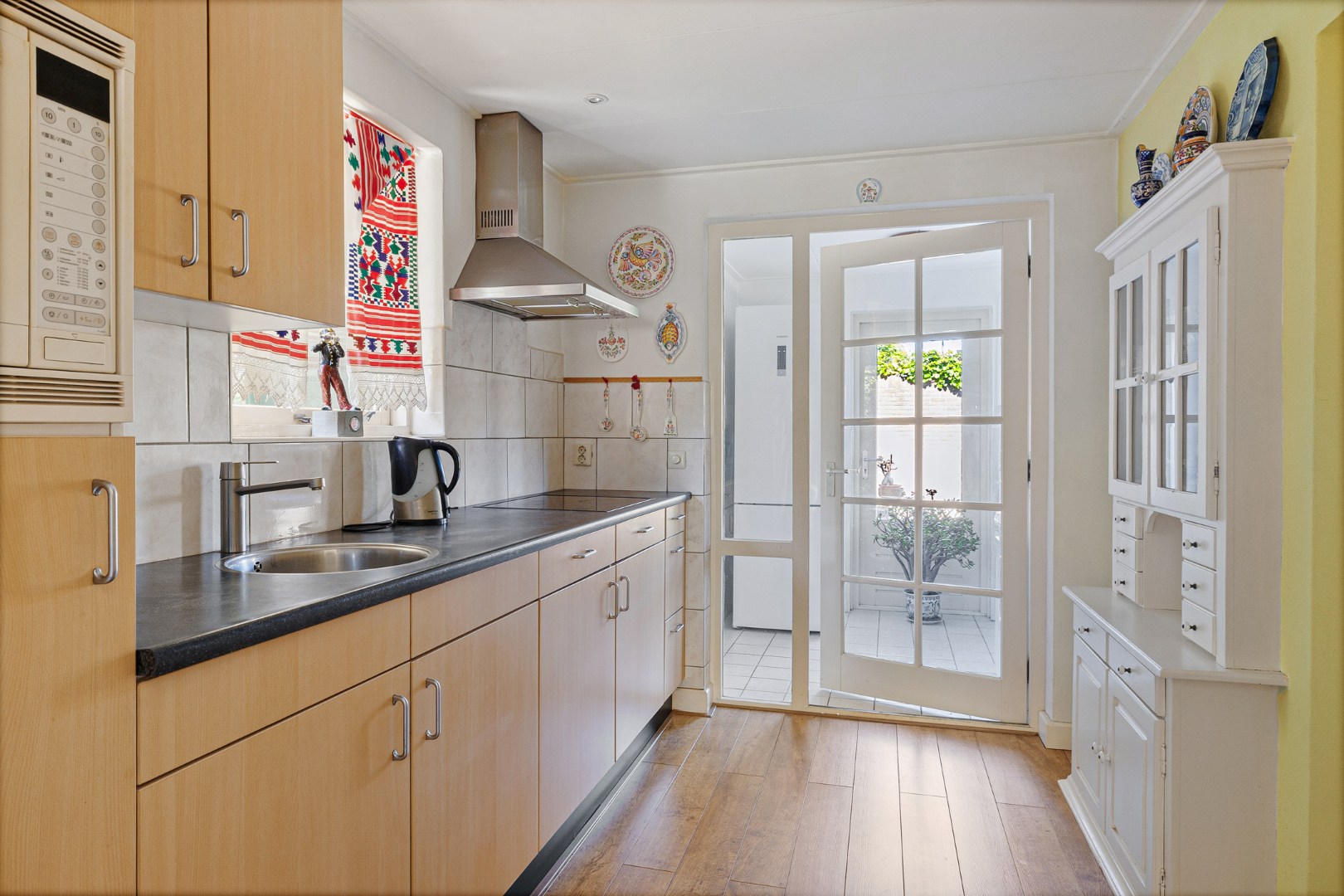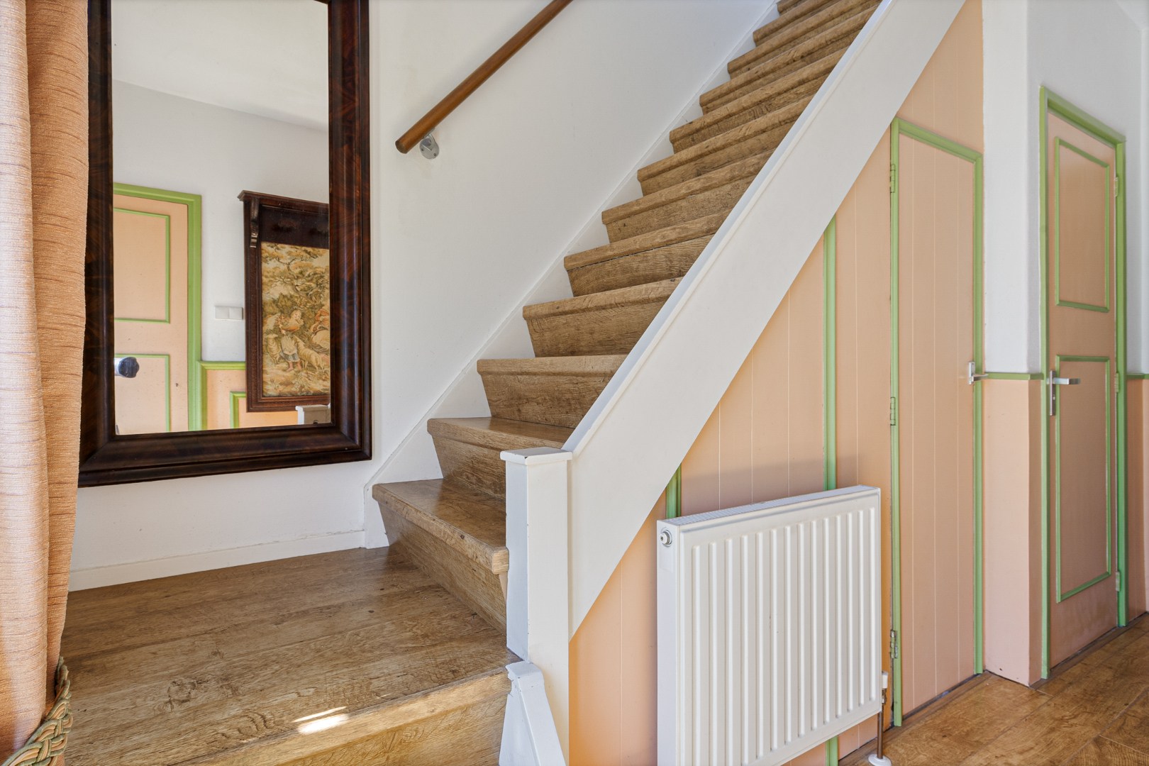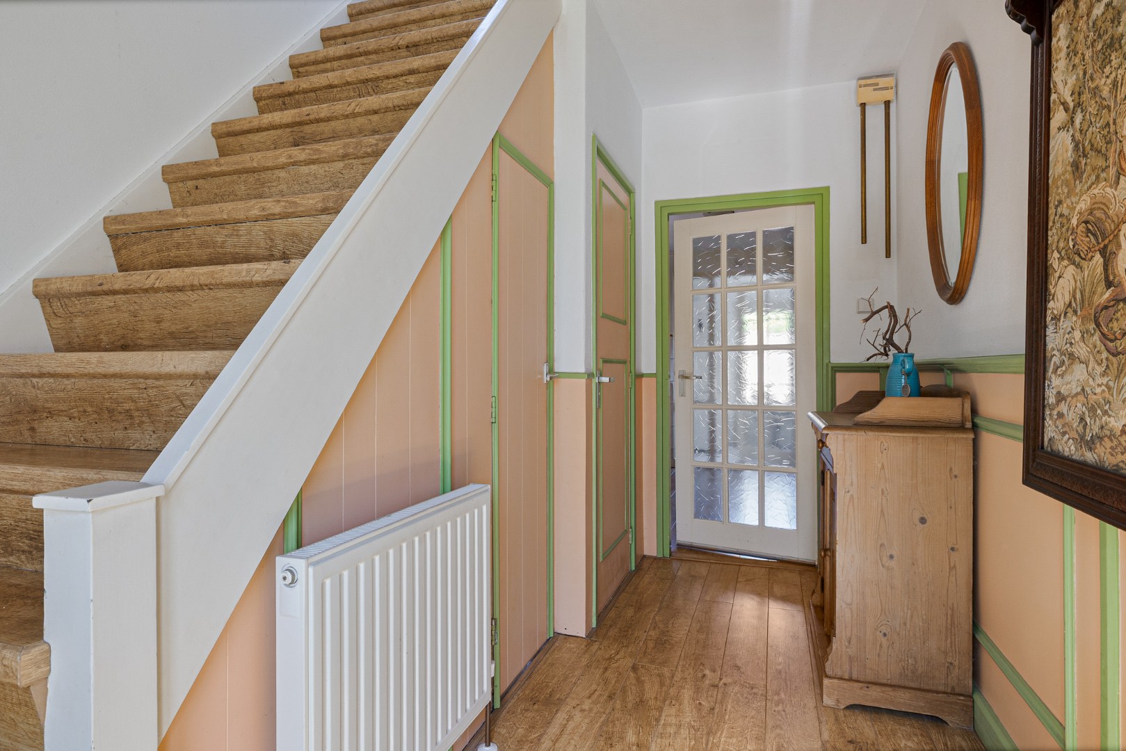 Begane grond: Entree/hal met vaste kastruimte, meterkast toilet en vaste trap naar verdieping, keuken voorzien van inbouwapparatuur en vaste kastruimte, eetkamer, woonkamer, bijkeuken met achterentree, garage en berging.