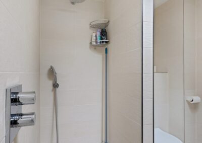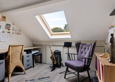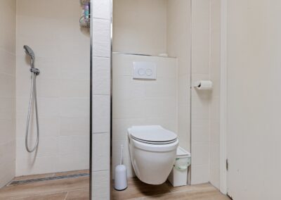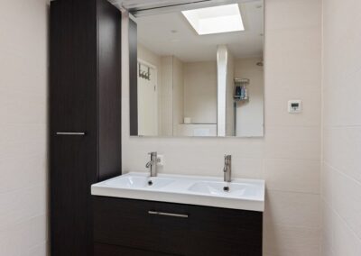 Eerste verdieping: Overloop, berging, drie slaapkamers (7m², 9m² en 11m² voorzien van vaste kastruimte), badkamer voorzien van dubbele wastafel met meubel, toilet en douche.
