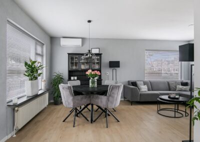 - Woonkamer en slaapkamer voorzien van airco (koelen en verwarmen);