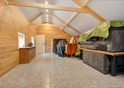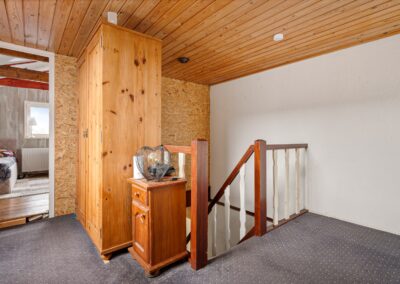 Begane grond: Entree, drie slaapkamers (15m², 16m² en 17m²), ruime woonkamer, hal met vaste trap naar verdieping, bijkeuken, hal met achterentree, badkamer voorzien van wastafel met meubel, toilet en douche, dubbele royale bergruimte.