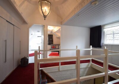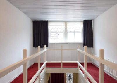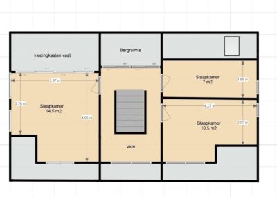 Eerste verdieping: overloop met vide en bergruimte, 3 slaapkamers waarvan 1 is v.v. vaste kasten.