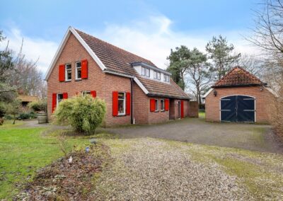 Dit vrijstaande woonhuis in Veele ligt op een royaal perceel van 11.995 m² en biedt een bijzonder gevoel voor ruimte. Via je eigen pad bereik je de woning, die midden op het perceel ligt en daardoor privacy en een vrij uitzicht over de landerijen biedt. Het ruime perceel is ideaal voor wie waarde hecht aan rust, ruimte en het buitenleven, of wie droomt van het houden van dieren aan huis.