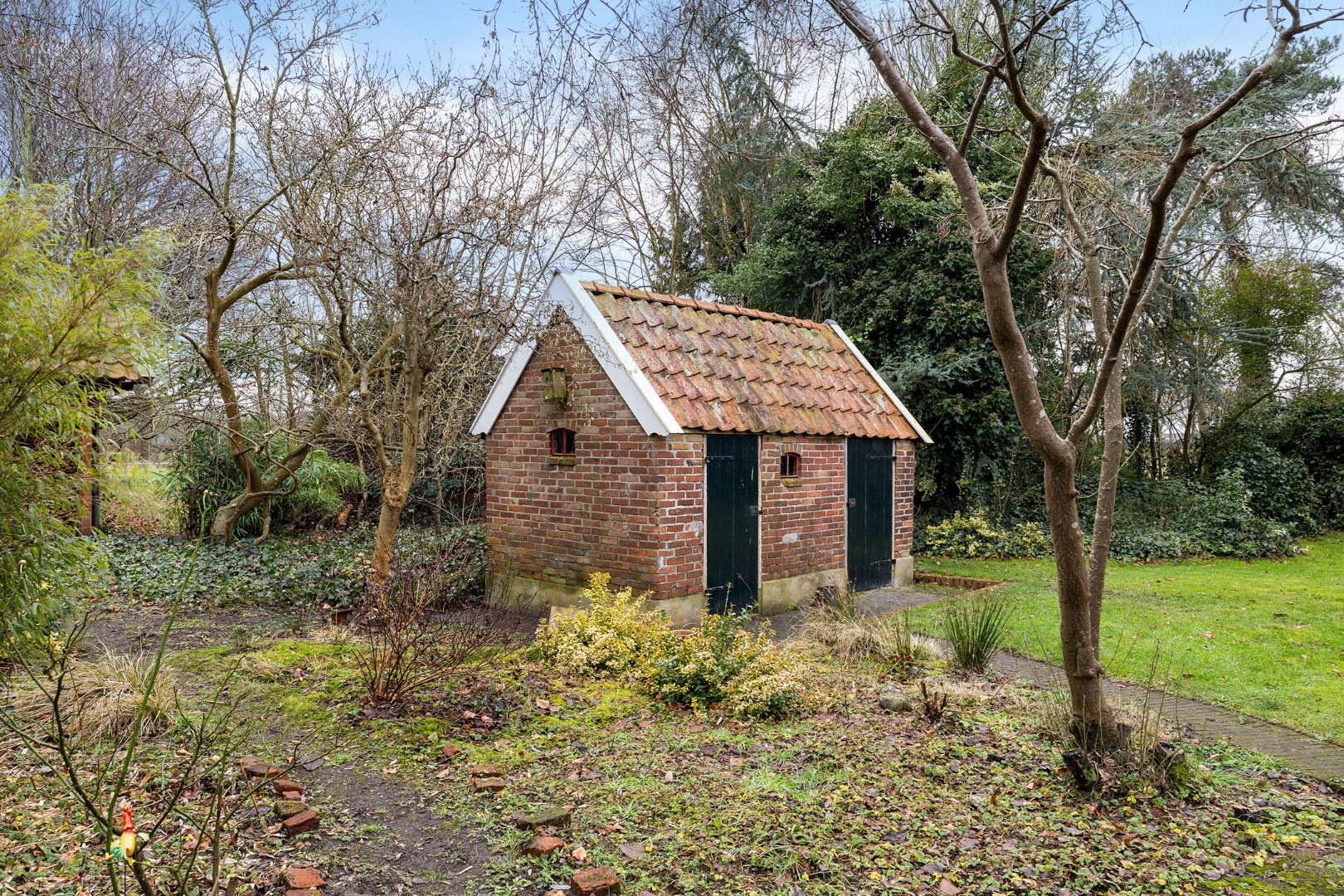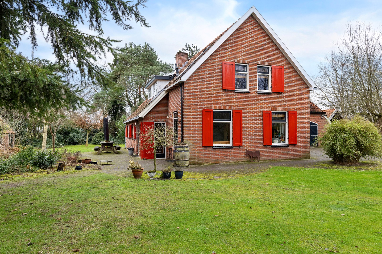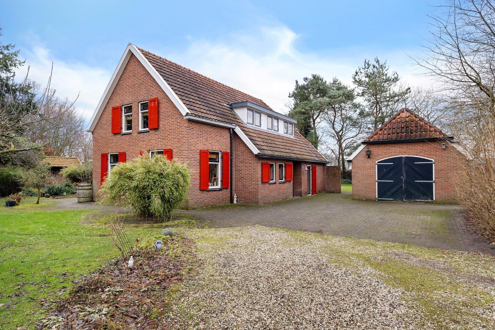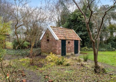 Rondom het huis vind je meerdere bijgebouwen, waaronder een ruime vrijstaande stenen garage.