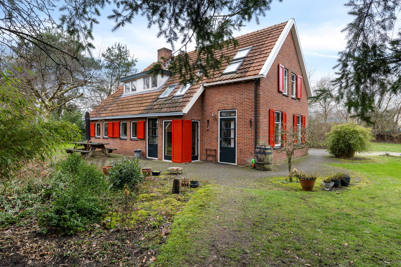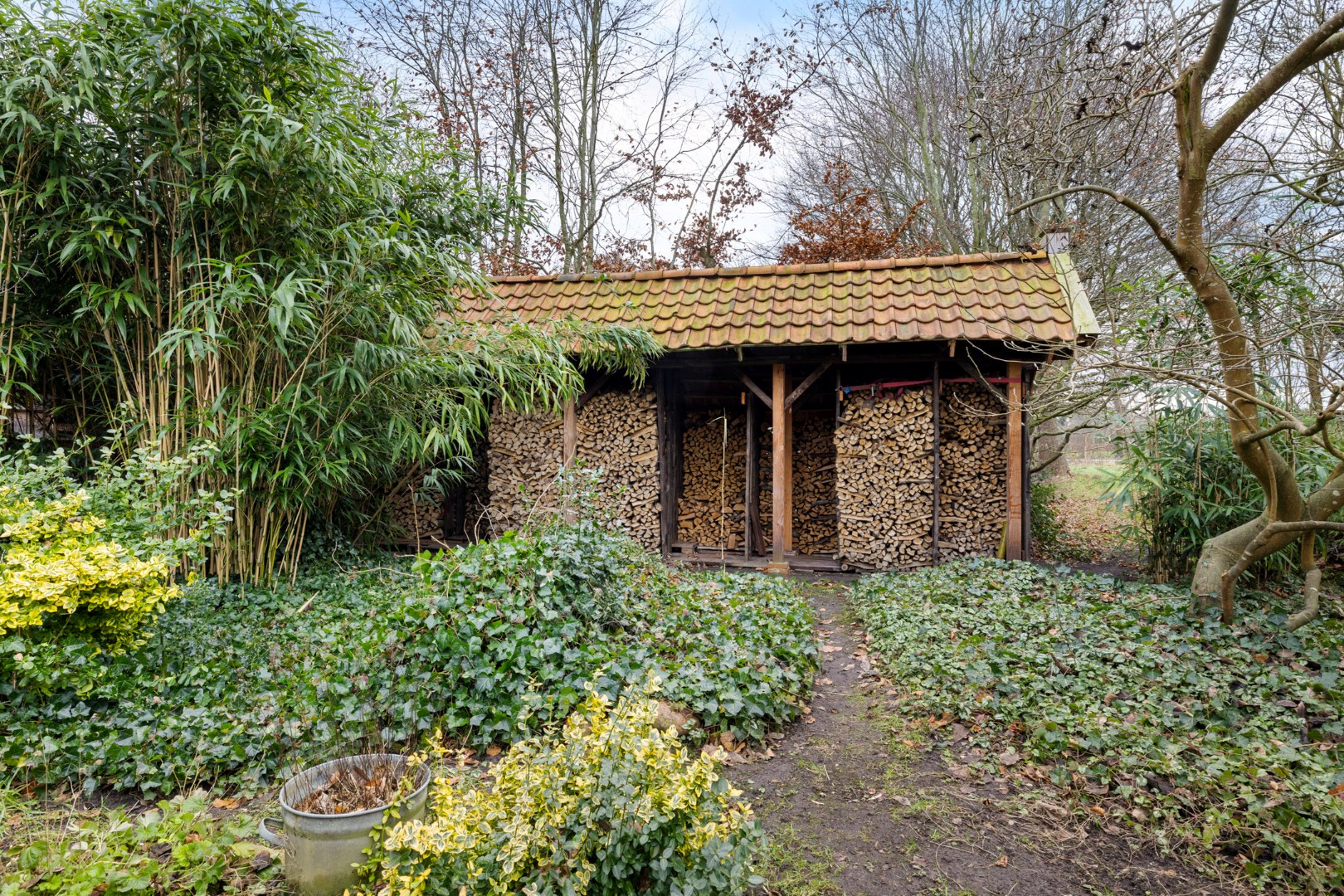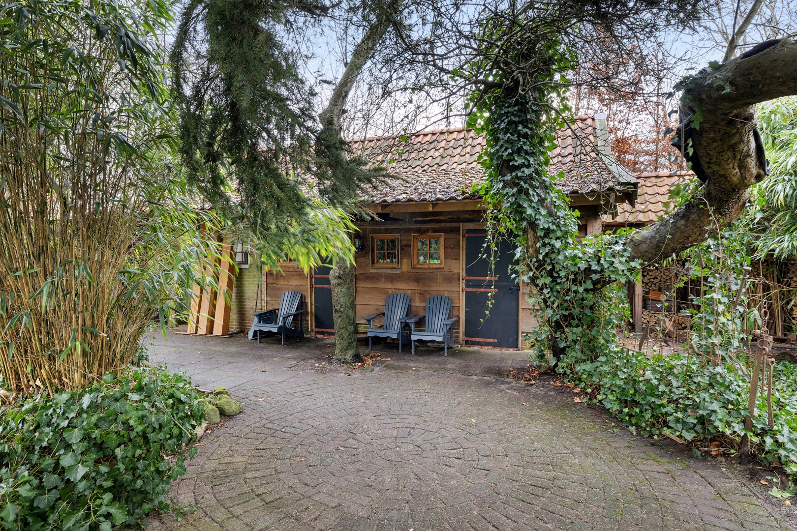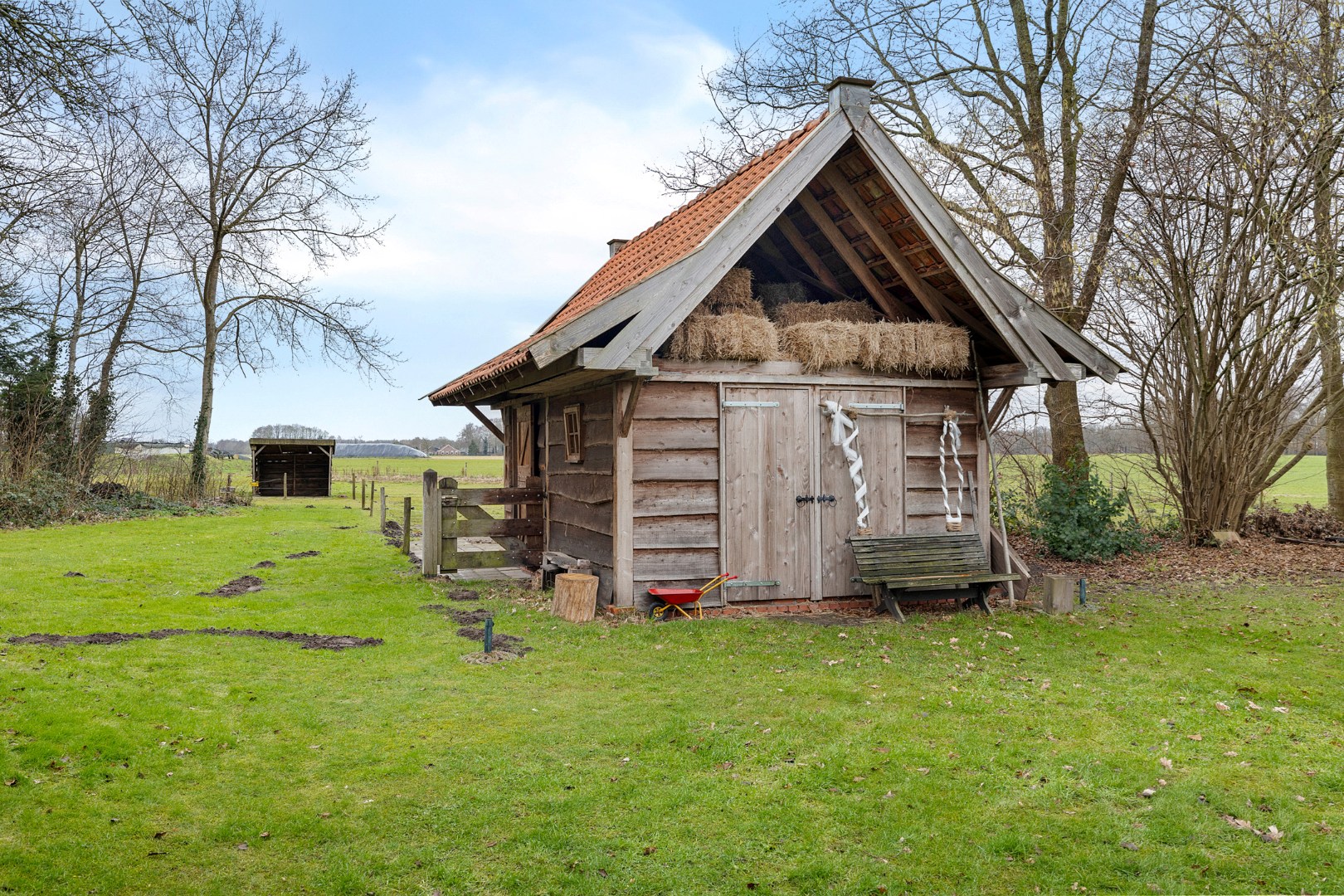 Rondom het huis vind je meerdere bijgebouwen, waaronder een ruime vrijstaande stenen garage.