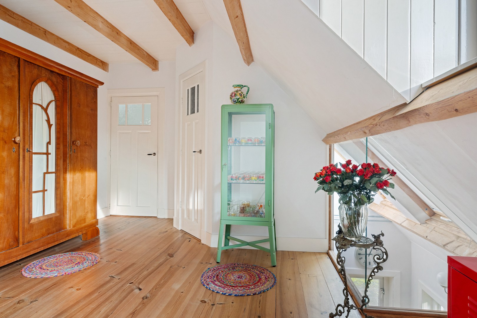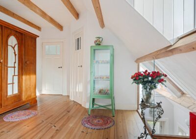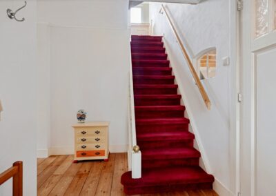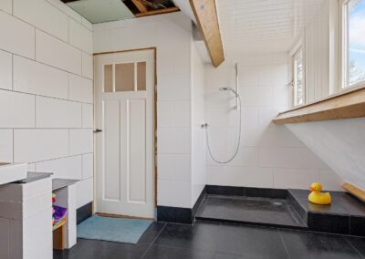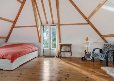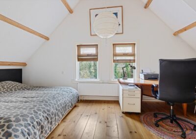 Eerste verdieping: Overloop met vaste kastruimte (CVketel), twee slaapkamers (15m² en 21m²), toilet voorzien van fontein, badkamer voorzien van douche en wastafel, vliering met berging (losse trap).