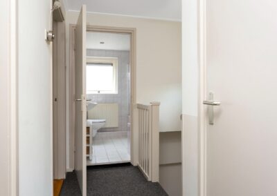 Eerste verdieping: Overloop met vaste kastruimte, drietal slaapkamers van ca. 13 m², 13 m², 6 m² waarvan twee zijn voorzien van een vaste kast, badkamer uitgerust met een ligbad, wastafel en toilet.