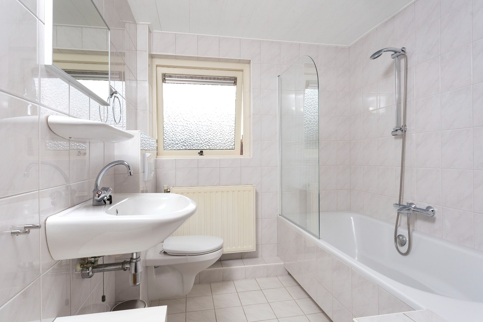 Eerste verdieping: Overloop met vaste kastruimte, drietal slaapkamers van ca. 13 m², 13 m², 6 m² waarvan twee zijn voorzien van een vaste kast, badkamer uitgerust met een ligbad, wastafel en toilet.